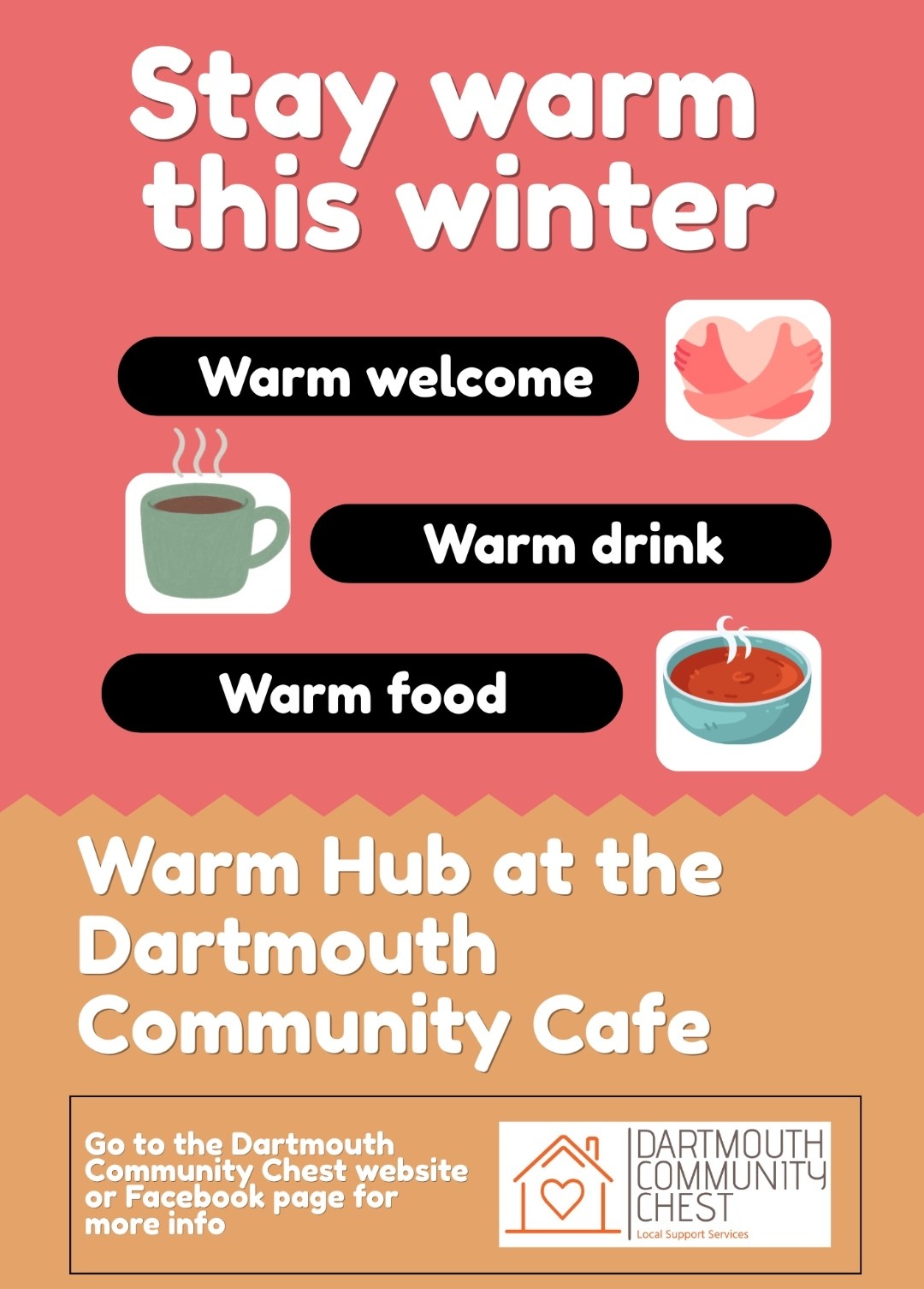 The community cafe will be open Monday, Wednesday and Friday 10-2, as a warm, safe space with home cooked meals, food to take away and lots of support and advice.