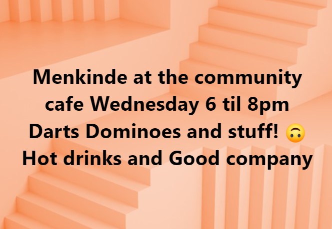Menkinde at the community cafe Wednesday 6pm to 8pm
